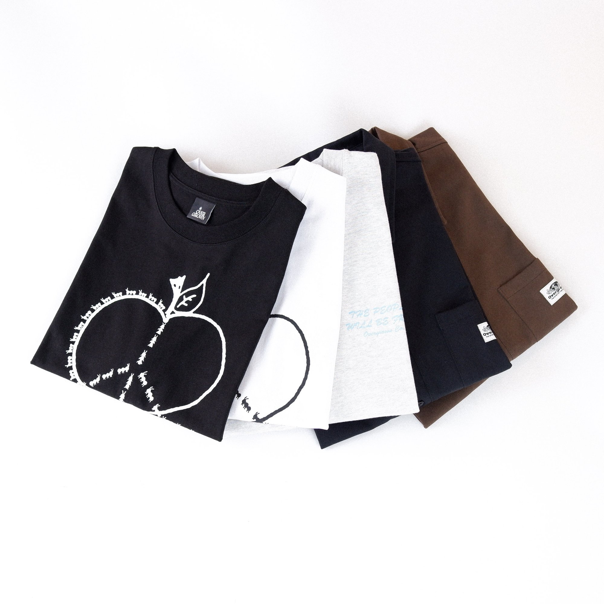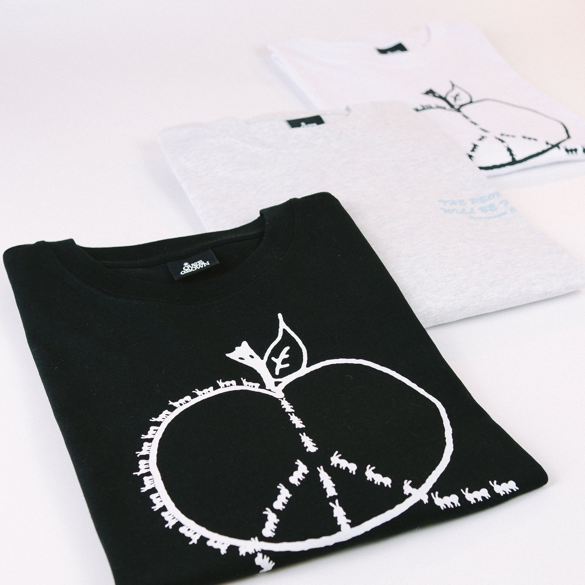 Heavy-weight (240gsm), 100% Organic Cotton Tee in Heather Grey with 2 colour (black), water-based, screen printed, pocket and back detail.