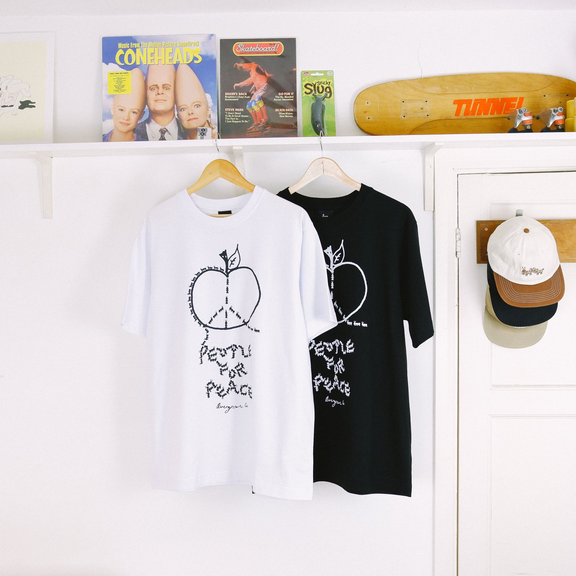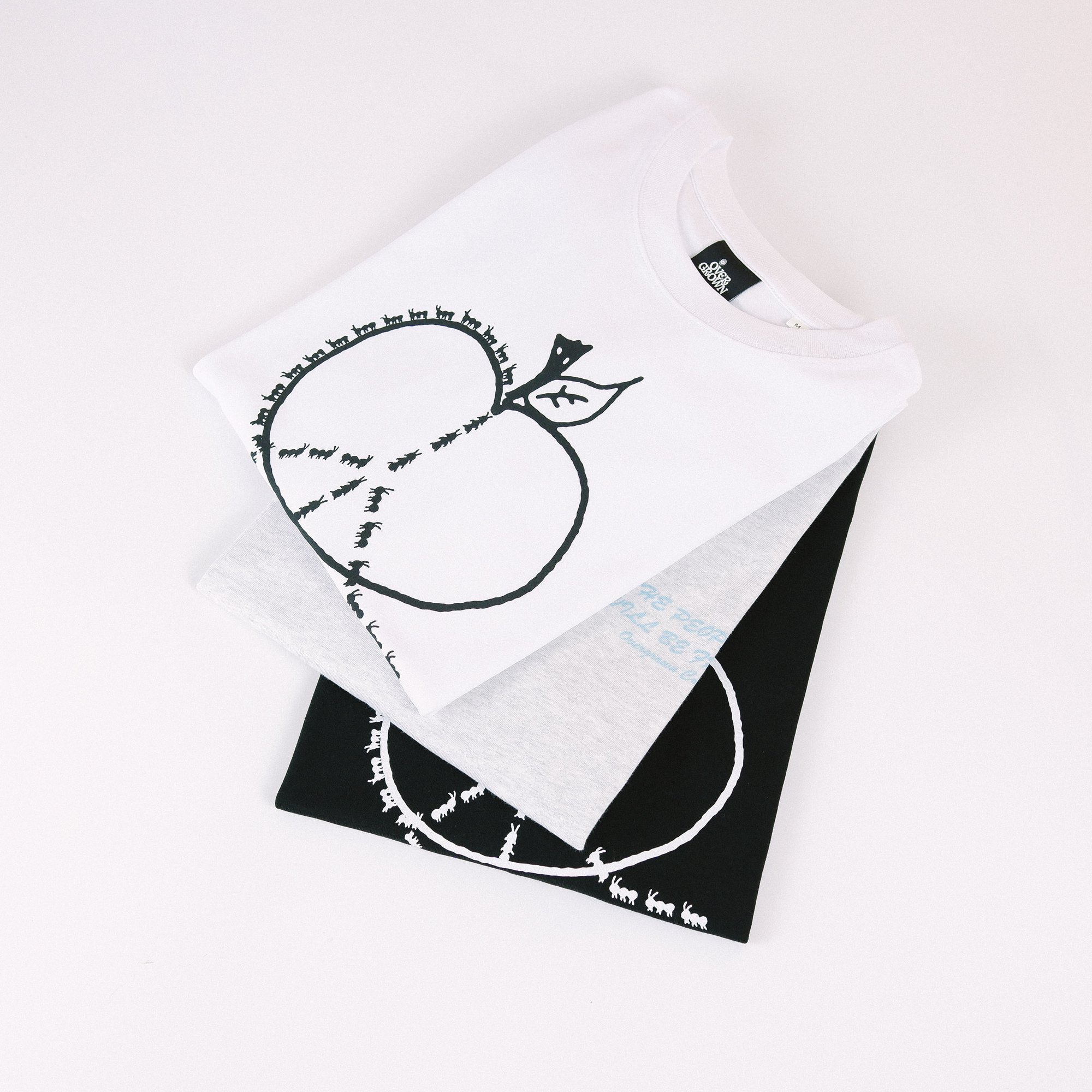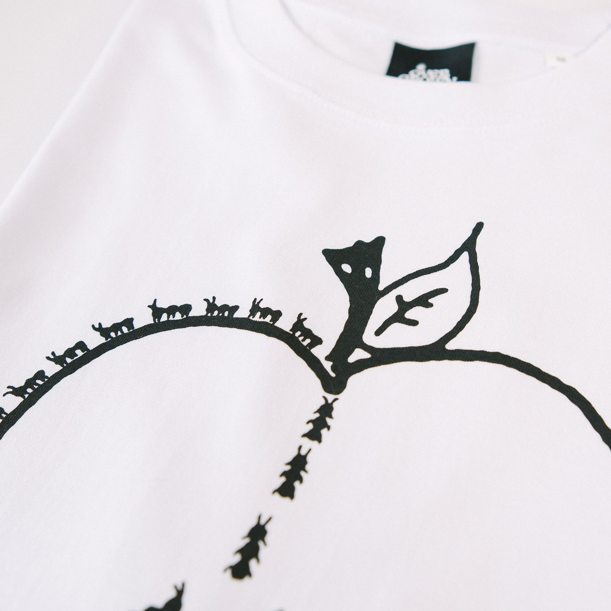 Heavy-weight (240gsm), 100% Organic Cotton Tee in White with 1 colour (black), water-based, screen printed, chest detail.